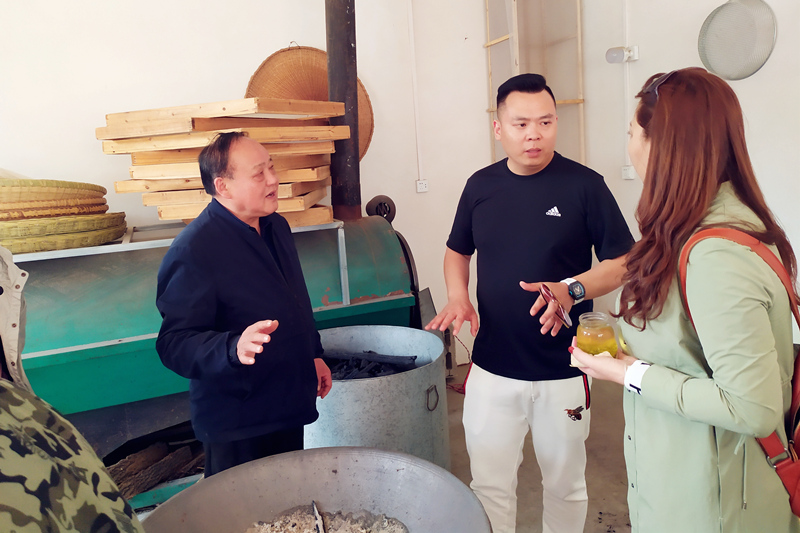 在這個秀美的山村里,周祖宏是個“名人”,他是周氏炒茶家族第四代傳人,憑著一手炒茶絕活,被河南省文化廳評為河南省省級非物質(zhì)文化遺產(chǎn)項目(信陽毛尖茶采制技藝)代表性傳承人。洛陽開元集團(tuán)一行來到周老師家里,董事長許明月與周老師親切交談,對制茶、品茶、信陽茶文化等一系列問題做了相互交流。在手工茶坊里集團(tuán)員工們也興致高昂地觀摩了炒茶師傅高超的手藝,手工炒茶可以使茶的營養(yǎng)成分更高,口感上偏濃,更加耐泡。大家品的是茶,吐出的是都市的困頓與繁雜。在300余畝的茶園中,縷縷茶香沁人心脾,在采茶工的引領(lǐng)下,全體員工愜意自得地體驗采茶的樂趣。